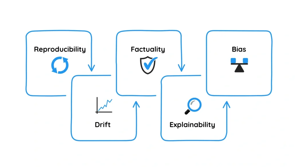 The Determinism Spectrum tells you which quality dimensions to prioritize. To learn how to test for reproducibility, factuality, bias, drift, and explainability: