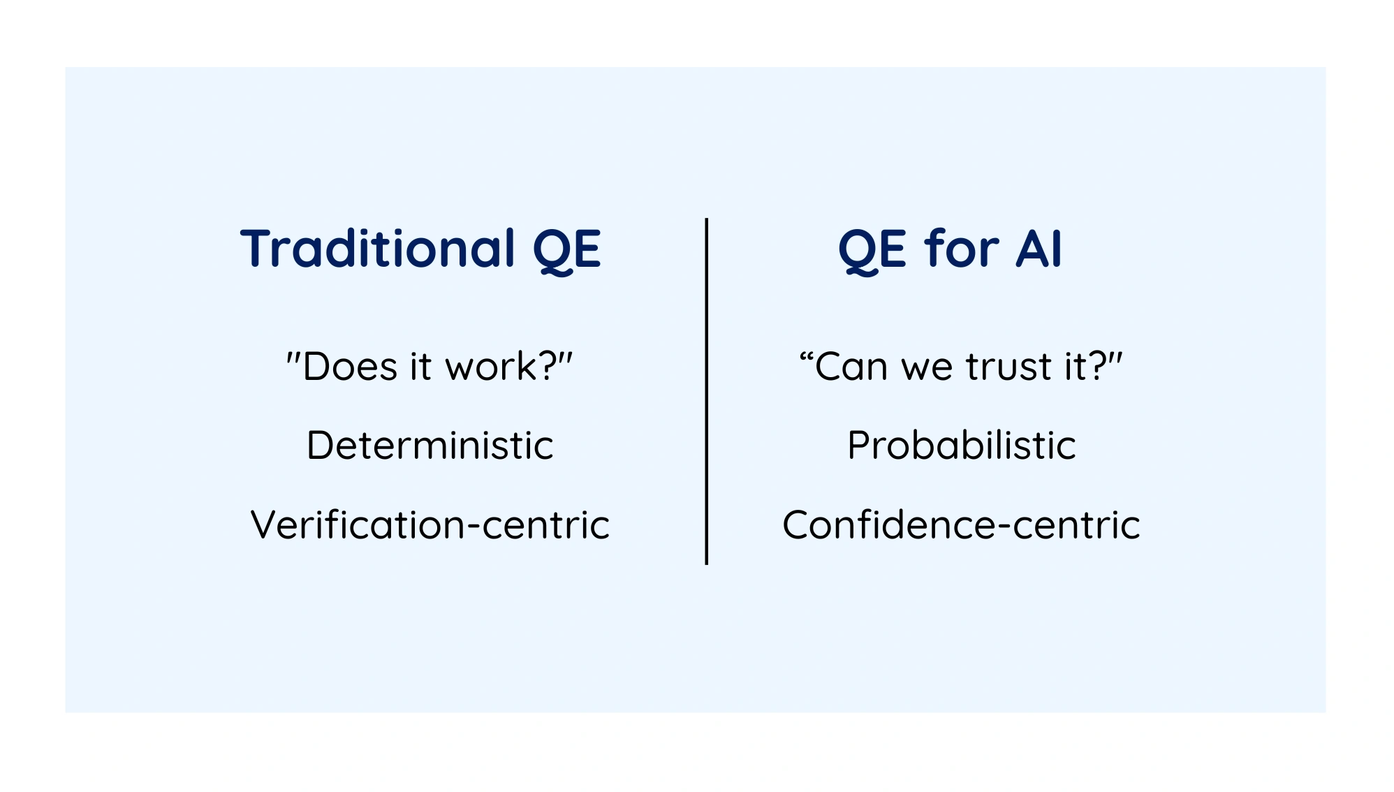 This creates a fundamental QE challenge: how can AI quality testing for systems be adaptive, probabilistic, and occasionally creative?
